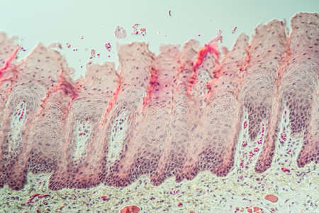 Education anatomy and Histological sample Touch corpuscles in skin Tissue under the microscope.