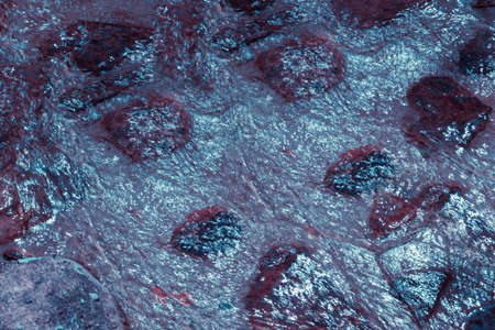 Macro photography view of a stunning abstract violet and red fingerprint on textured background