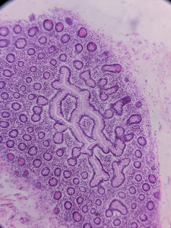 Tissue of Small intestine (Duodenum), Large intestine Human and Stomach Human under the microscope in Lab.