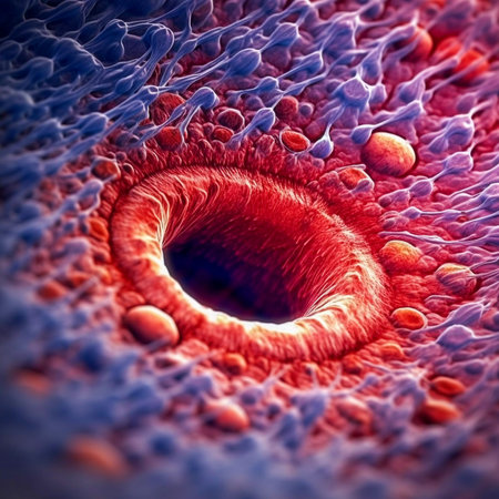 A closeup of glandular epithelium highlighting its specialized cells for secretion and absorption