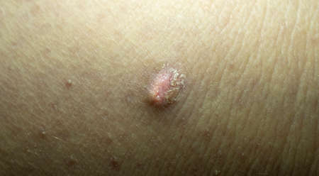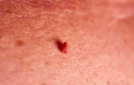 Close-up view of the an human skin with human skin sarcoma. Large suspicious dangerous mole on the skin