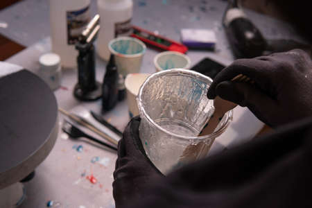 Plastic artist painter working in workshop