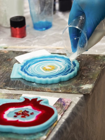 Woman making epoxy resin arts and crafts.