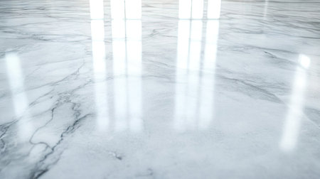This image features polished marble flooring reflecting light, creating a sense of elegance and modernity. Ideal for interior design or architecture themes.