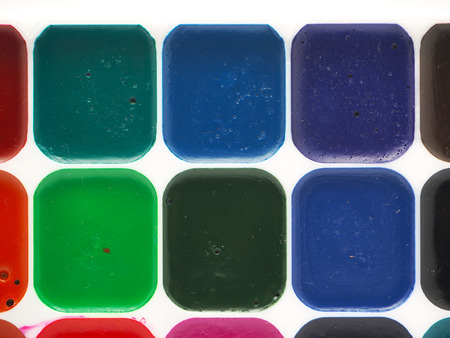 Close-up macro shot of beautiful vibrant watercolour pallete with plenty of texture and details
