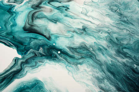 Turquoise abstract marble texture background. Acrylic painting on canvas with waves.