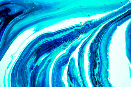 Close Up Colorful Blue and White Fluid Pouring Abstract Art Acrylic Painting Texture Background