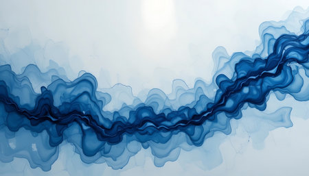 Abstract artwork featuring a blend of blue and gold fluid patterns, symbolizing elegance and serenity through its flowing and dynamic composition.