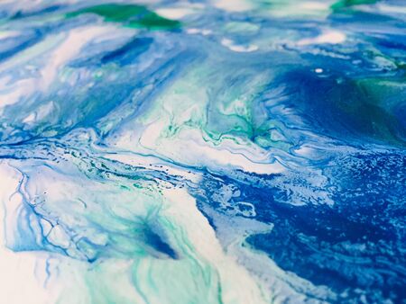 Close Up Colorful Blue White Green Fluid Pouring Abstract Art Acrylic Painting Texture Background