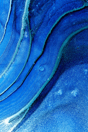 Sea deep inspired abstract marble liquid texture in silver white glitter, indigo, ultramarine and black colors. High quality illustration