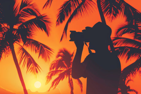 a background with the silhouette of a photographer capturing a sunrise