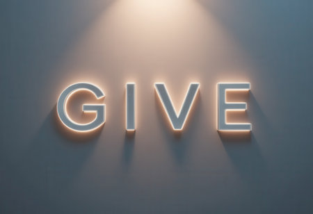 A captivating illuminated sign featuring the word 'GIVE,' radiating a soft glow against a minimalist wall, perfect for conveying messages of positivity and inspiration.
