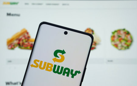 Dhaka, Bangladesh - 18 March 2025: The logo of the subway is displayed on a smartphone screen, and the website subway is visible on a computer screen in the background.