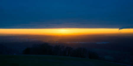 Sunset over the meadow with trees in the foreground, UK