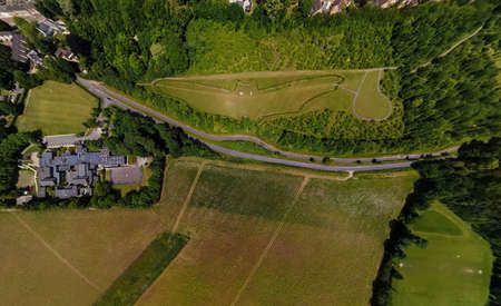 Aerial view of moto racing in english countryside, UK