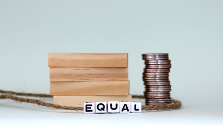 Equal pay words on wooden blocks. Income differences between men and women concept.