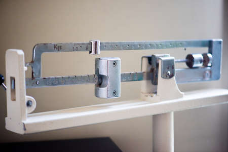 Old weighing dial of scales. Vintage mechanical scales. Libra. Vintage weathered weighing