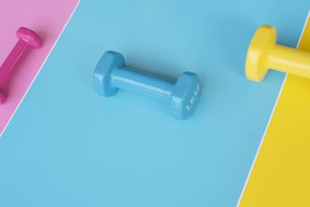 The concept of fitness and healthy sports. Pastel color dumbbell on pastel background.set or banner Generative AI