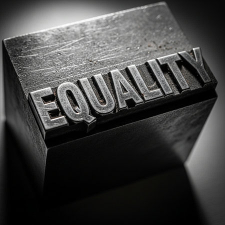 The word EQUALITY in metal letterpress type on a black background.