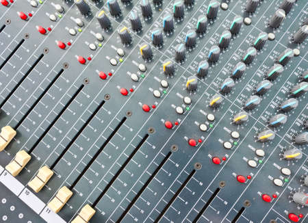 Part of an audio sound mixer with buttons and sliders