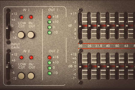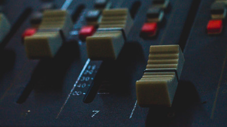 Detail of a music mixer desk with various knobs
