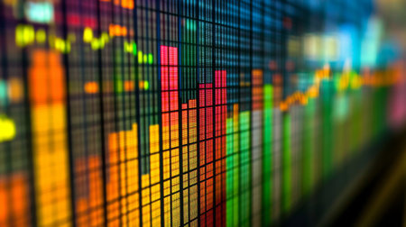 Vibrant financial data visualization showcasing colorful charts and graphs. Ideal for illustrating market analysis, investment trends, and business insights.
