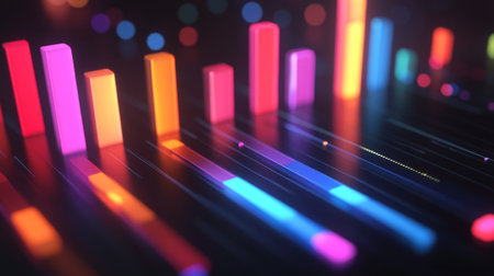Vibrant display of statistical data on a mobile device, illuminated with colorful bars against a blurred background, showcasing modern technology and innovative analysis.