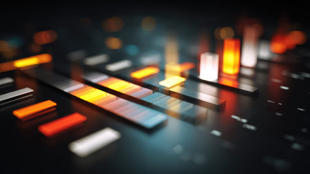 An audio mixer with its knobs and sliders meticulously adjusted, embodying precision and control in the art of sound engineering and music production