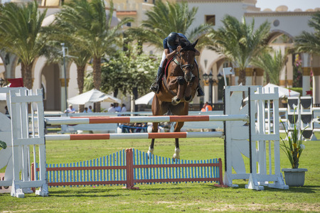 SAHL HASHEESH, EGYPT - OCTOBER 29TH 2016: Arab Championship Showjumping World Cup Qualifiers on October 29th 2016 in Sahl Hasheesh, Egypt. Riders and horses in action during the main Grand Prix event.