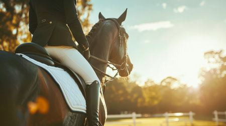 In the warm glow of a setting sun, a skilled rider and their powerful horse soar gracefully over an obstacle. This moment captures the peak of concentration, trust, and athletic partnership, symbolizing dedication and the pursuit of excellence in equestrian sports.