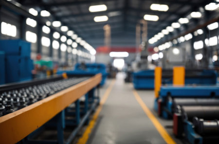 Factory workshop in bokeh. Defocused background. Industrial, abstract creative.