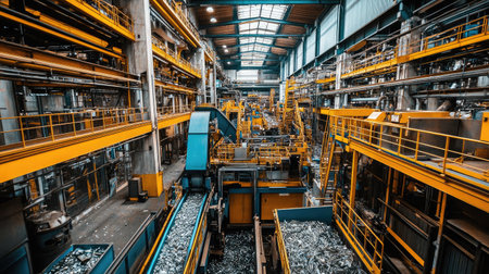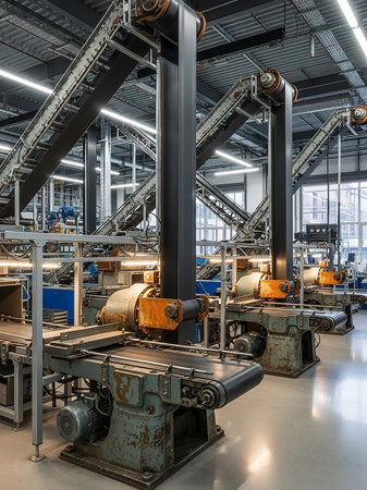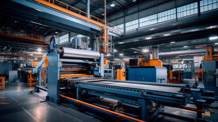 Explore an industrial factory interior featuring advanced machinery and equipment designed for efficient manufacturing processes in a spacious environment.