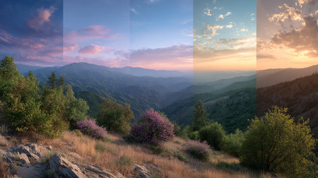 Mountain Range Views at Different Times of Day, Showing the Changing Light.