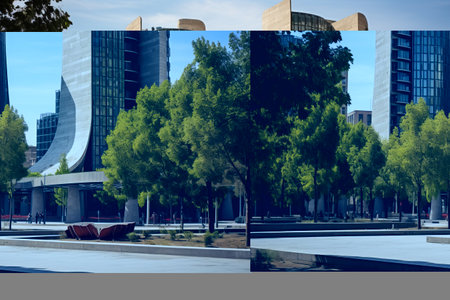 Stunning Modern Skyscrapers at Park Placa dels Voluntaris Olimpics, Barcelona: A Captivating View of Catalonia, Spain