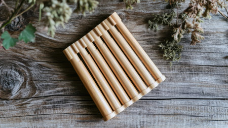 This image captures a wooden musical instrument resting on a rustic wooden surface, surrounded by dried plants. The warm tones and textures evoke a sense of artistry and tranquility, making it ideal for creative projects.
