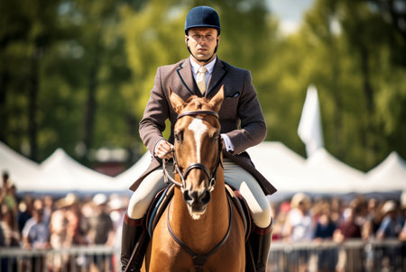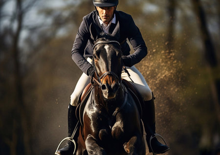 Fierce Man horse competition. Rider riding sportive. Generate Ai