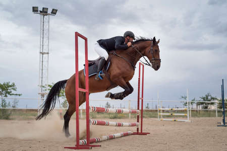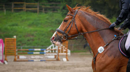 Equestrian show jumping horse training. Equestrian theme.