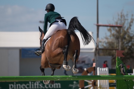 VILAMOURA, PORTUGAL - APRIL 2, 2016: Horse obstacle jumping competiion, called Vilamoura Atlantic Tour that brings the finest athletes to the event.