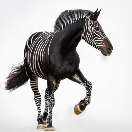AI Generated. A zebra with a pink face is shown in a black background