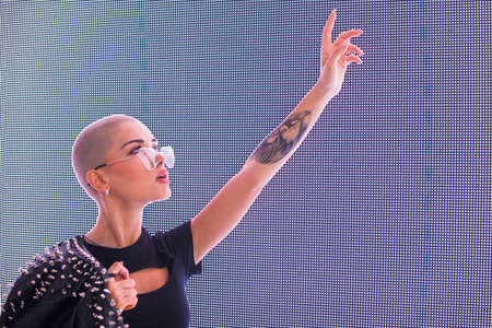 ISTANBUL, TURKIYE - JUNE 11, 2022: Turkish singer Hande Yener concert in Kurucesme Arena