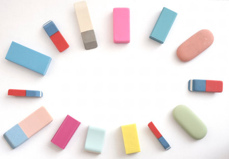 erasers placed in a circle on the paper