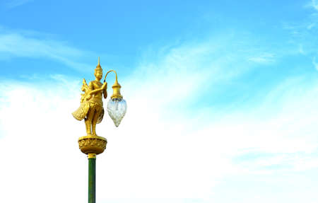 A golden Kinnara (The male counterpart of Kinnari) with lamp