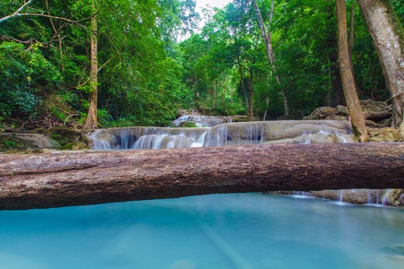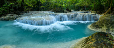Waterfall in Deep forest at Erawan waterfall National Park, Kanjanaburi Thailand.
