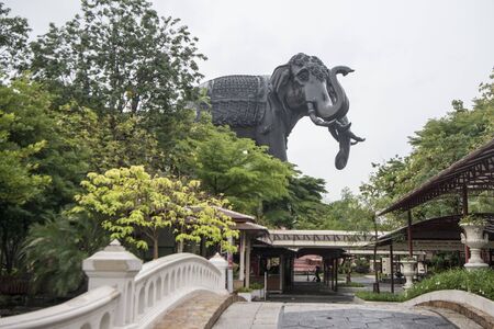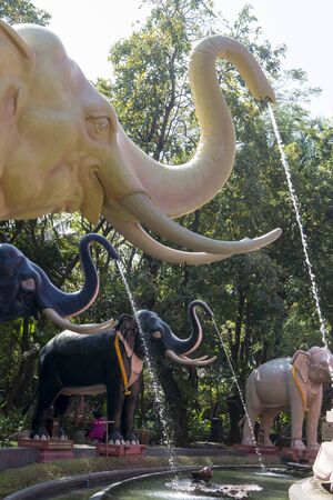 elephant statues in the garden of the Erewan Elephant Museum and temple in Samut Prakan nea the city of Bangkok in Thailand in Southest Asia. rThailand, Bangkok, November, 2019