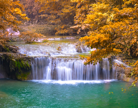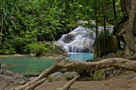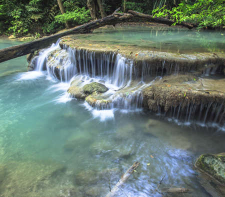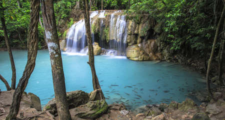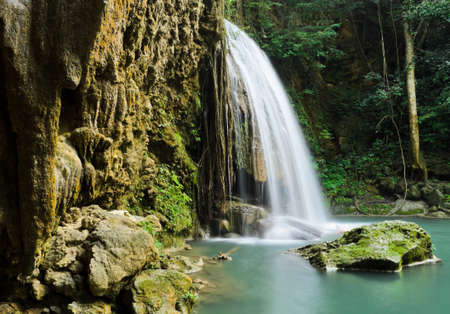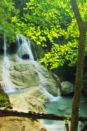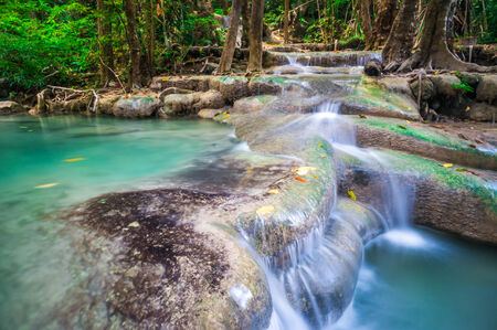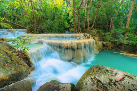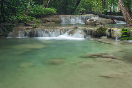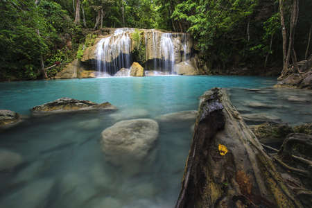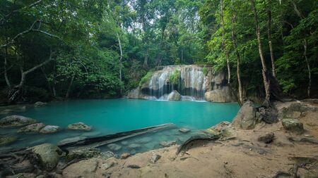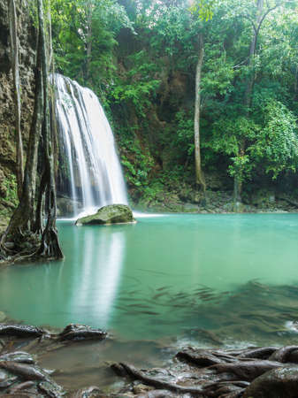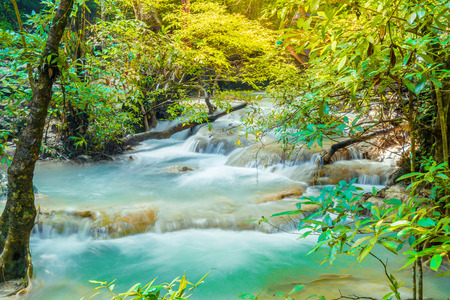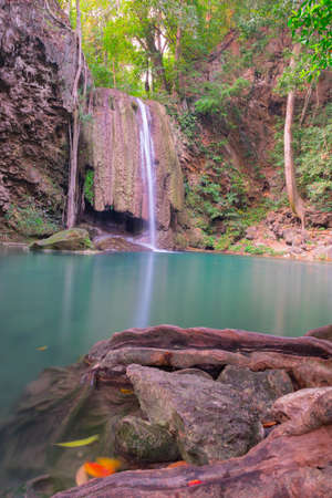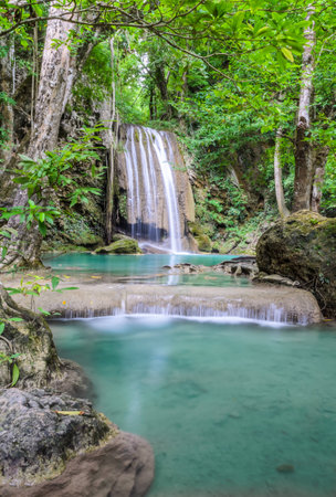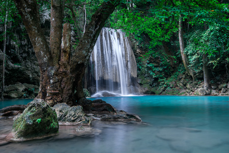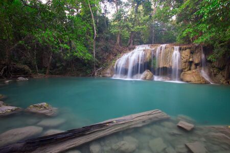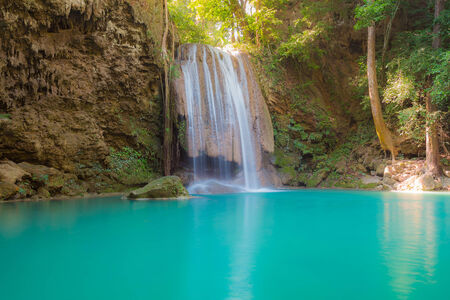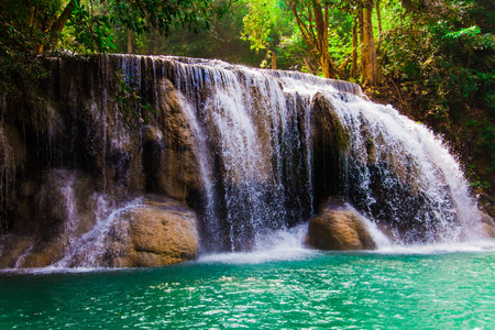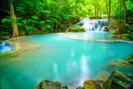 Deep forest waterfall at Erawan waterfall National Park, Kanchanaburi, Thailand