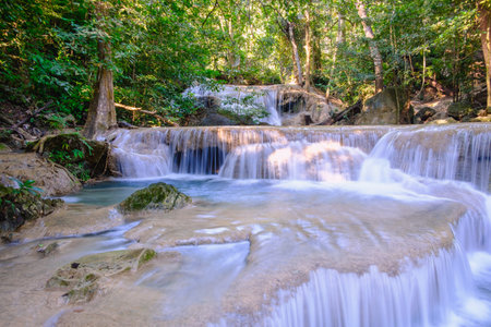 Waterfall in tropical forest at Erawan national park Kanchanaburi province, Thailand