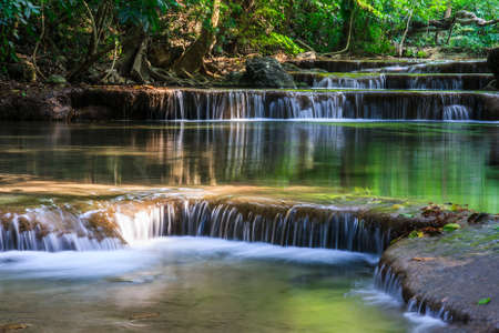 Waterfalls in the beautiful nature. Magic Water falls famous in Kanchanaburi, Thailand. Huai Mae Khamin Waterfall - 7-tier water falls in a national park.
