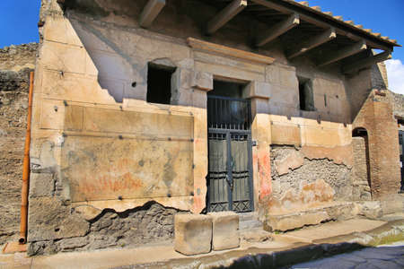 Entrance of a palace in the roman ruins of the ancient archaeological site of Herculaneum in Ercolano, Italy