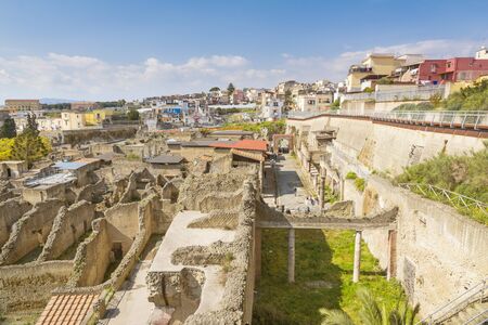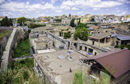 View of the roman ruins of the ancient archaeological site of Herculaneum in Ercolano, Italy