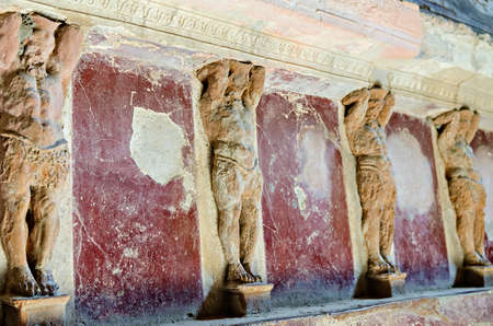 A caryatid is a sculpted figure serving as an architectural support taking the place of a column or a pillar supporting an entablature on her head.Ancient roman public baths and leisure center.Pompeii is a ruined and partially buried Roman towncity near m